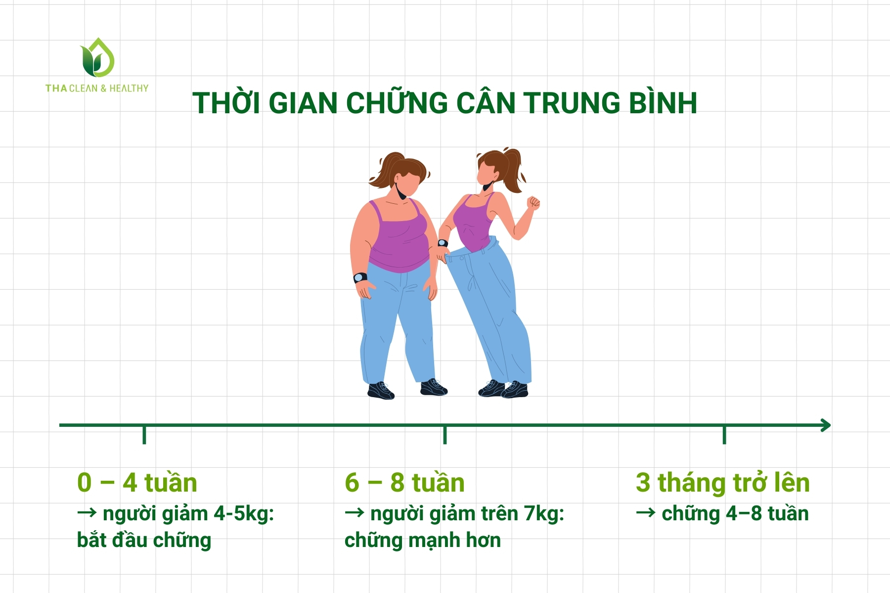 Người giảm trên 10kg hoặc tập đều >3 tháng: giai đoạn chững có thể kéo dài 4-8 tuần, tùy thói quen sinh hoạt, giấc ngủ và hormone.